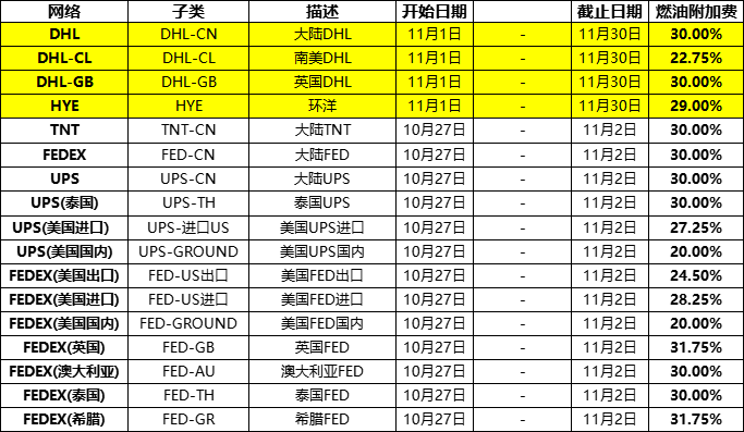 2025.10.27-2025.11.02 燃油附加费